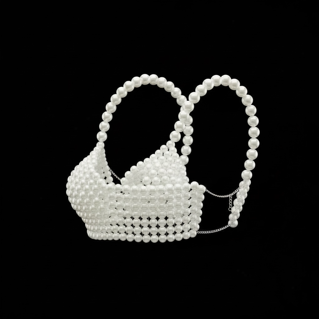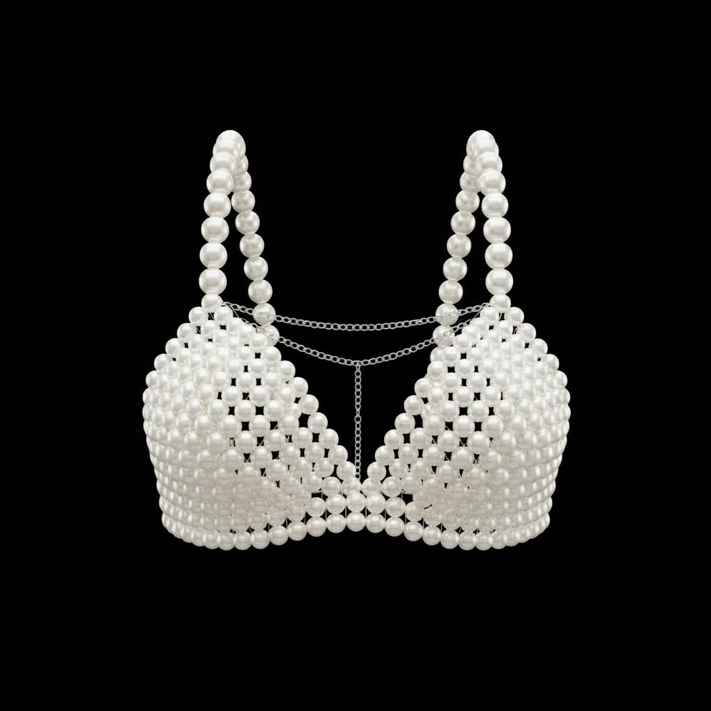 - Premium pearl bralette design with sophisticated chain link accents